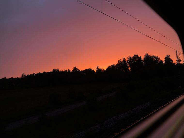 Leider war es recht herausfordernd eine gute Perspektive aus dem Zug heraus zu finden, aber ich habe versucht mit der Kamera das Beste herauszuholen. Die Sonne geht dann letztendlich gegen 22:08 unter, und wir machen uns auf den Weg ins Bett. Das Schlafabteil in diesem Zug ist doch deutlich angenehmer als die ÖBB Abteile, die schon für 4 Personen eng bemessen wirken. Viel Platz hat man hier zwar auch nicht aber es ist irgendwie einfacher sich zu arrangieren.