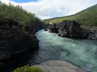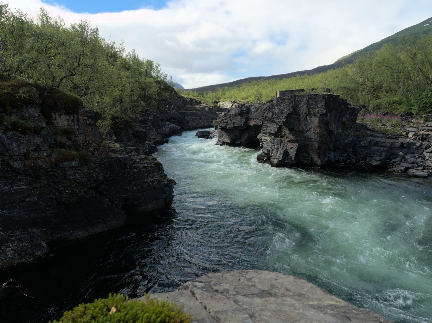 Hier fließt der Abiskojåkka durch ein freigesprengtes Loch, das errichtet
