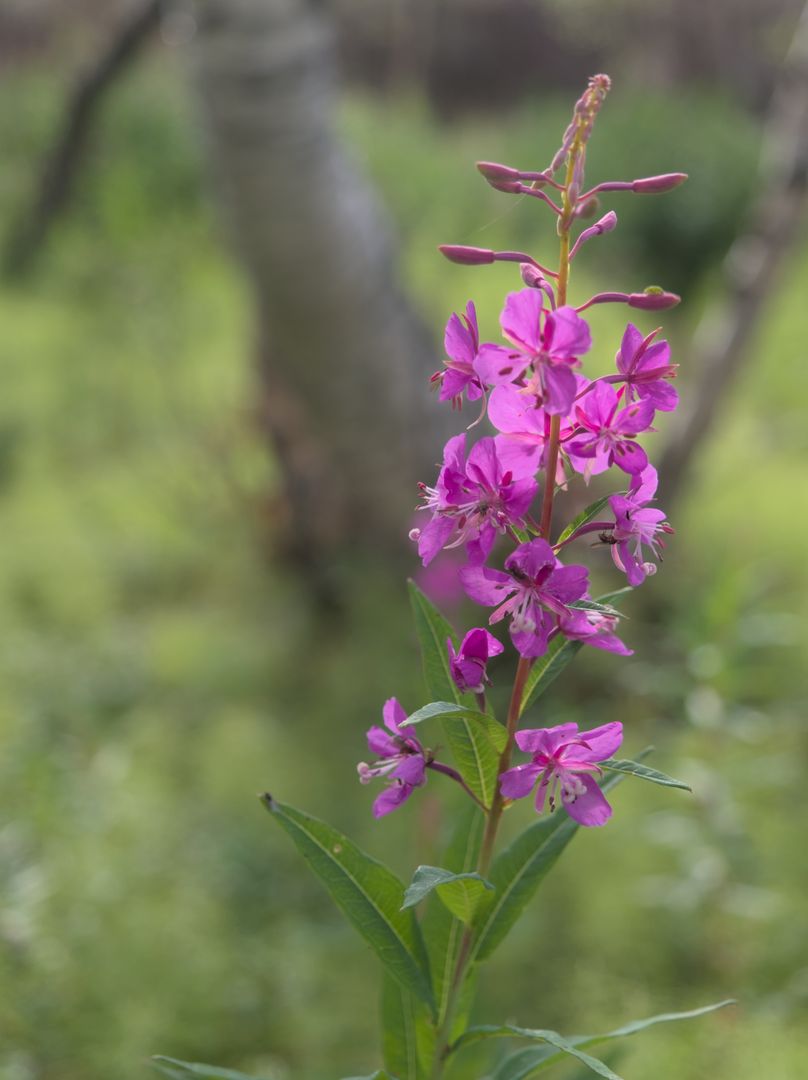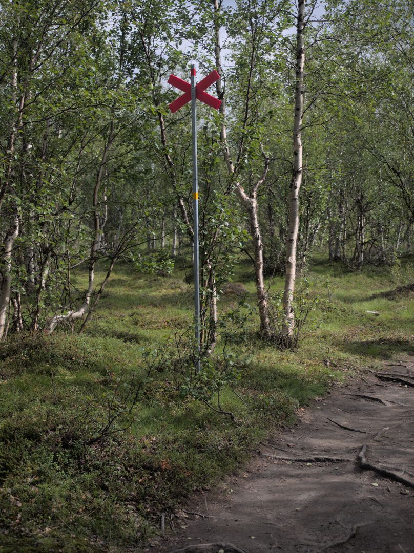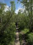 einen Birkenwald, in dem die Bäume selten größer als 3 Meter sind. Der Weg ist
