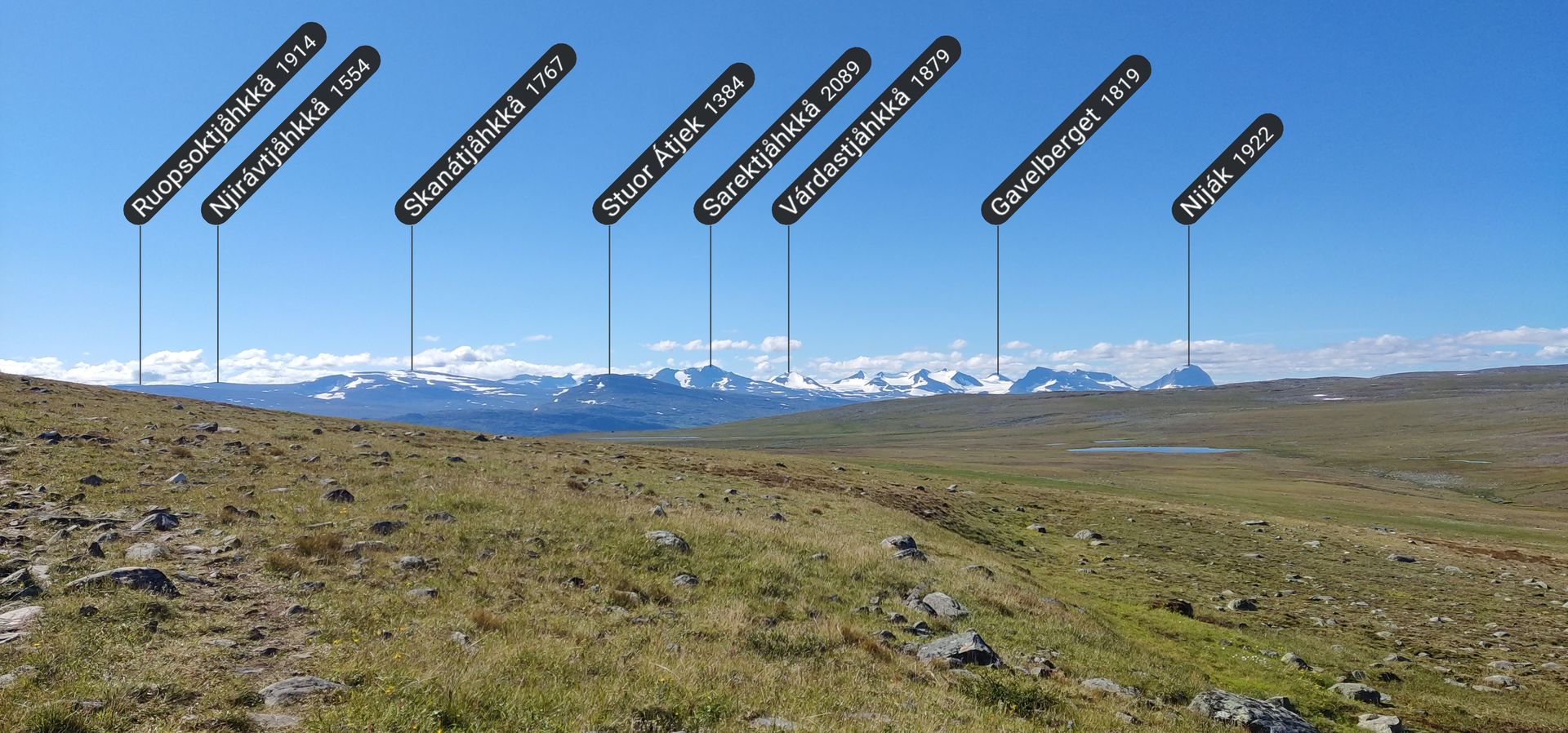 zweitgrößte Berg Schwedens ist. Einige Nebengipfel des Sarektjåhkå und der