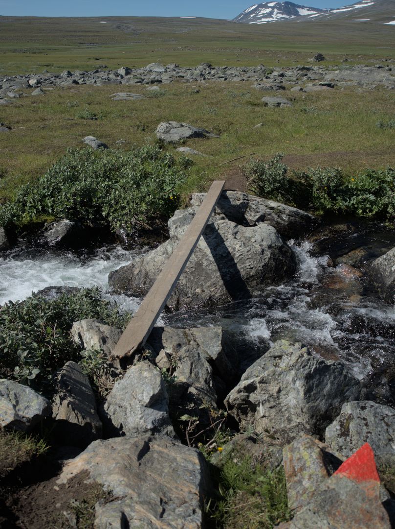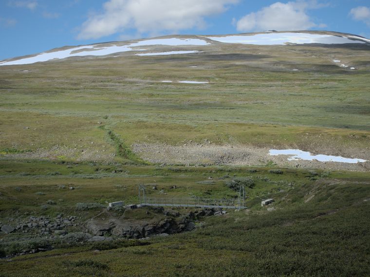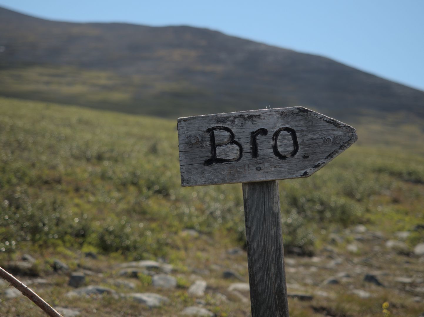 Hier wurde eine Brücke über den Gáppejåhkå errichtet, aber die Wegmarkierungen