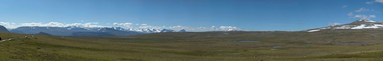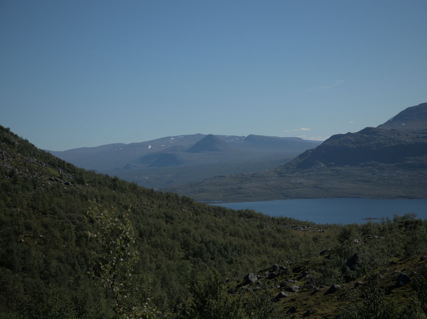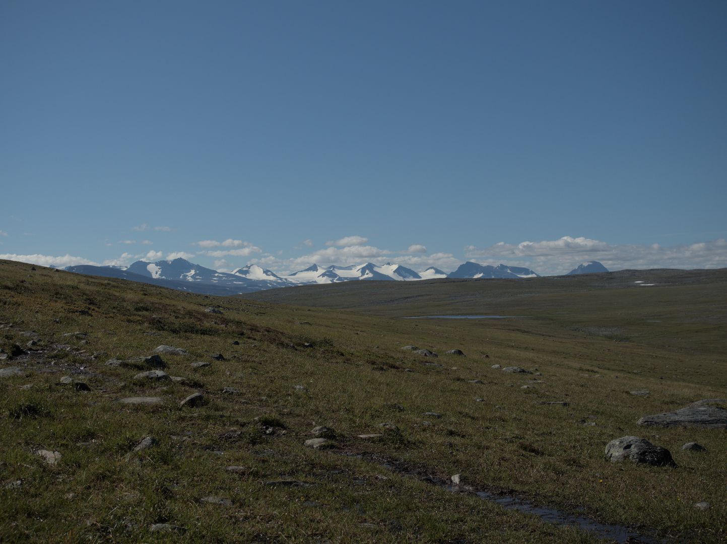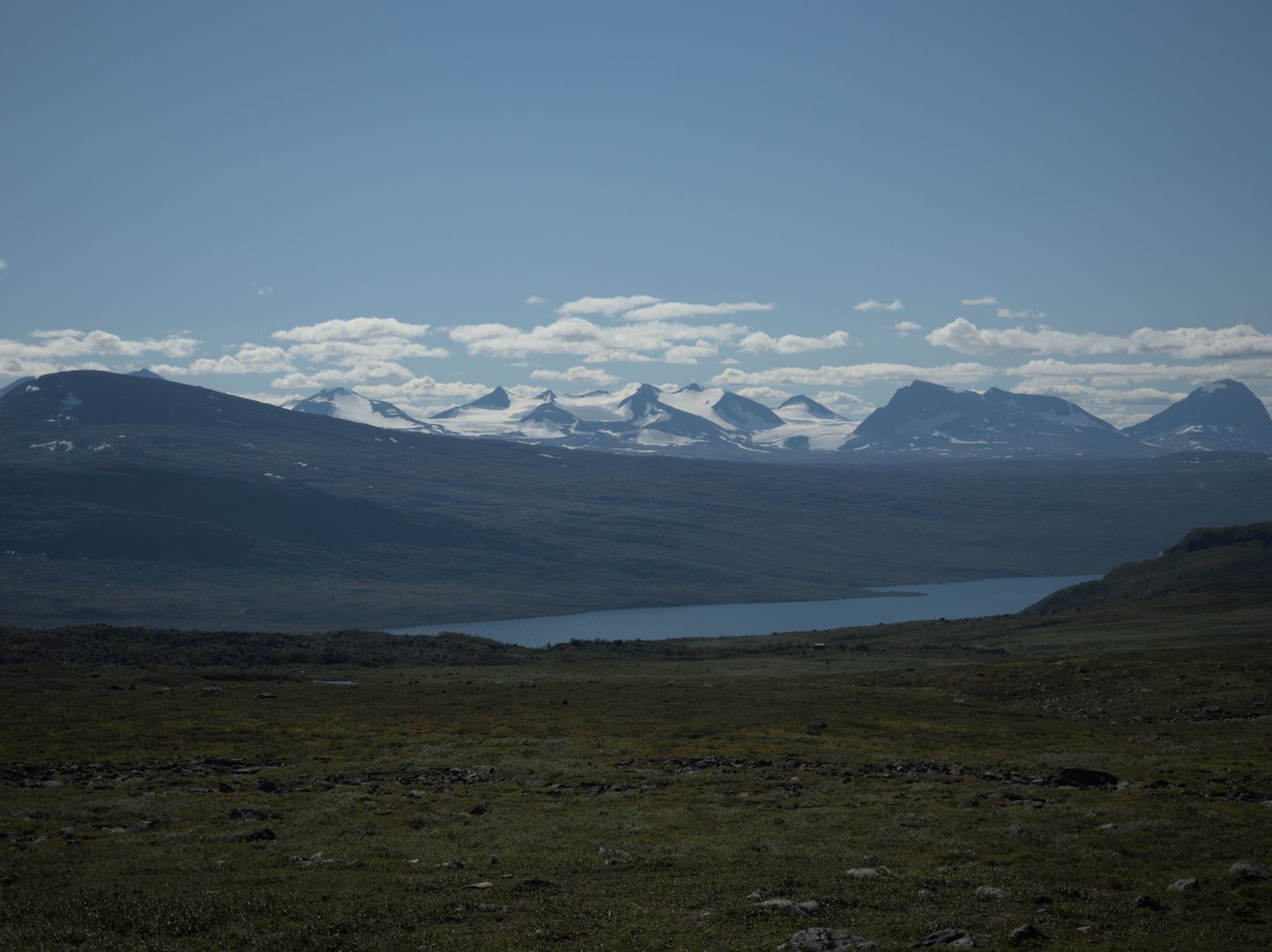 die Sarekgipfel in der inzwischen schon ein wenig näher gerückten Ferne, und