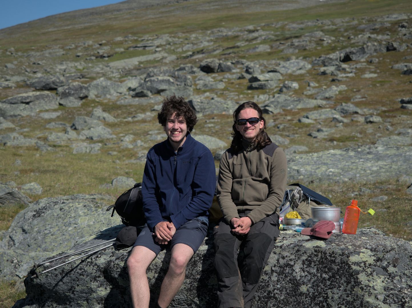 Sowohl unser Buch über den Kungsleden, als auch das Hörensagen am Trail selbst haben uns Hoffnung bereitet, dass wir bei, oder schon am Abstieg nach Vakkotavare Empfang haben, und so wieder Kontakt zu unseren Liebsten aufnehmen können. Eigentlich hatten wir geplant sobald wir Empfang haben einen Zeltplatz zu suchen, doch als wir schon fast unten, aber immer noch empfangslos sind, nehmen wir einfach eine Stelle die sich sehr anbietet, insbesondere weil es hier am “Hang” wirklich nur wenige gute Plätze gibt. Ohne schweres Gepäck gehen wir die letzten 5 Minuten zum See. Hier gehen wir seit einer gefühlten Ewigkeit (Tag 0) wieder einmal auf Asphalt. Am See bekommen wir tatsächlich für einen Moment Internet, was ausreicht, um alle Nachrichten die seit Tag 1 an uns verschickt wurden zu empfangen, aber leider nicht um Antworten und ein Lebenszeichen zu versenden. Auch unser Plan nach meinem Sturz eine Schock-olade zu kaufen, geht schief, weil es in Vakkotavare keinen Laden gibt. Aber davon recht unbeirrt freuen wir uns trotzdem diesen Abschnitt des Kungsleden geschafft zu haben, und erwarten es kaum, morgen mit dem Bus nach Kebnats, und dann mit dem Boot nach Saltoluokta zu fahren, von wo aus der Kungsleden weiterführt. Dort haben wir dann hoffentlich wirklich Empfang.