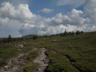 hinter den Hütten losgeht. Dabei stoßen wir immer wieder auf Heidelbeeren, auf
